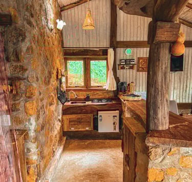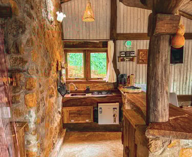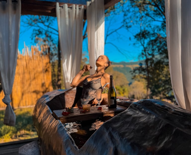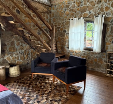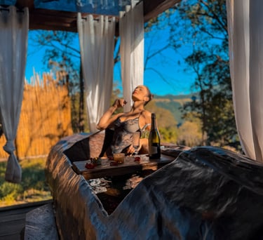 Um refúgio compacto e acolhedor, com ofurô único em eucalipto centenário e todo o charme da vida no campo.