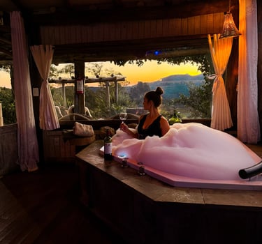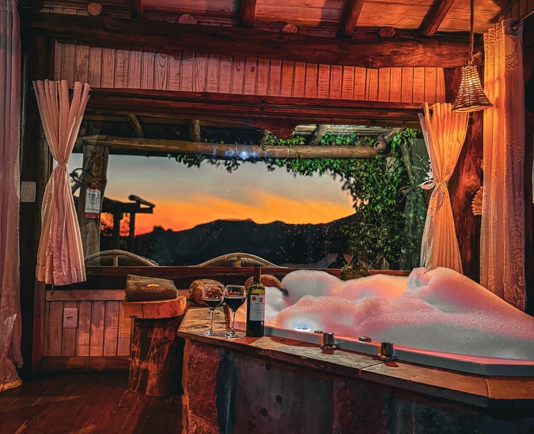 Um refúgio romântico para casais, com hidromassagem de frente para pôr do sol e amanhecer entre araucárias. Dependendo da época do ano você pode assistir o fenômeno mar de nuvens.