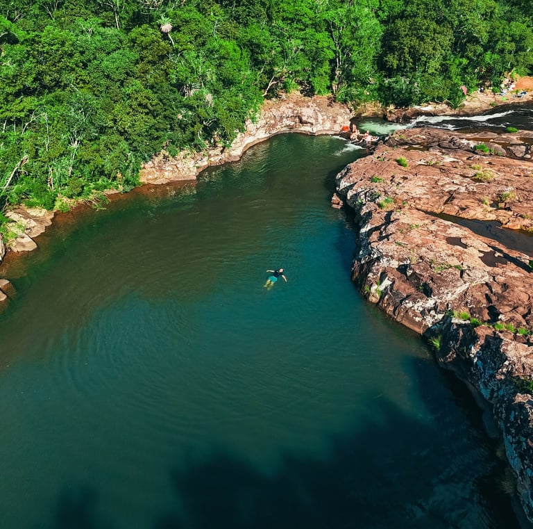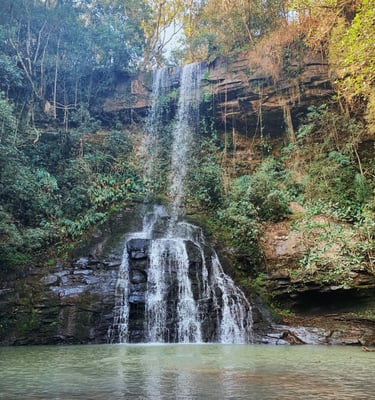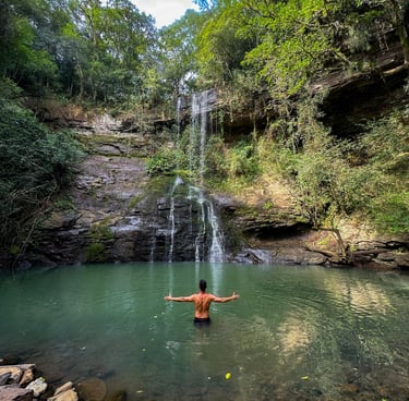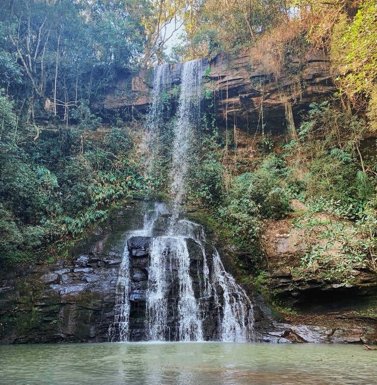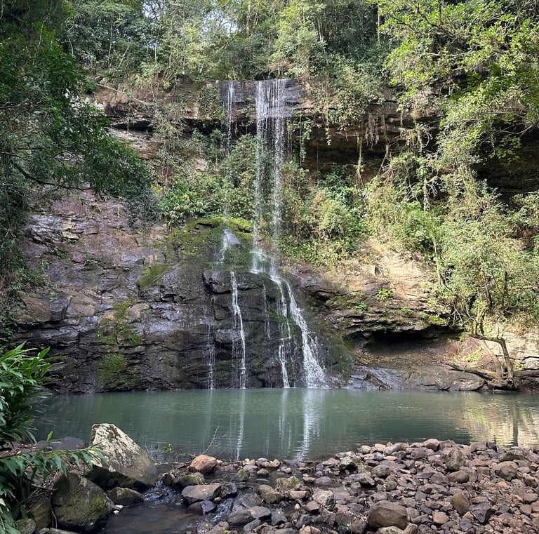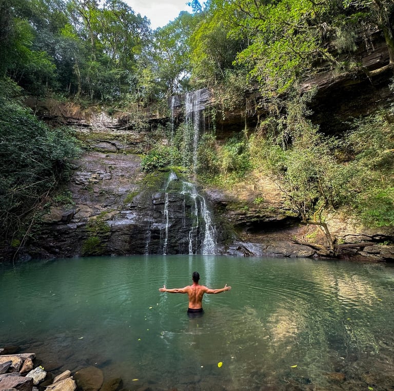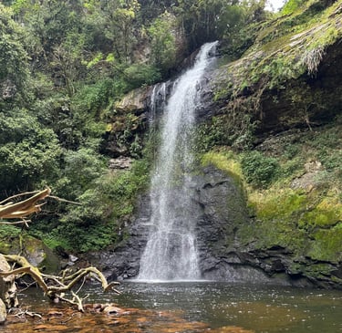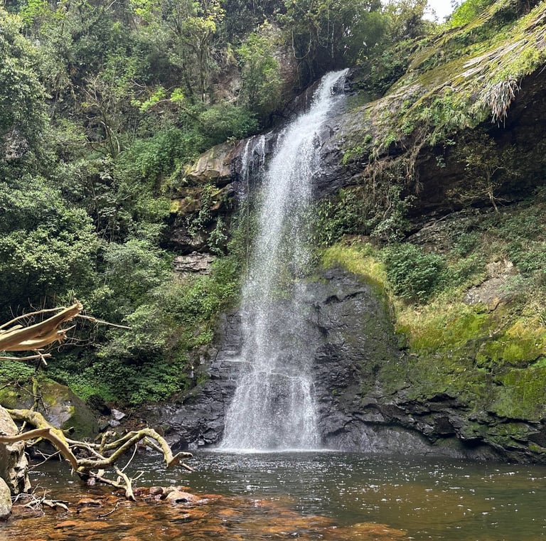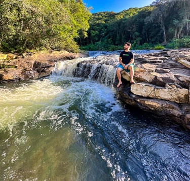 Cascata Vila Nova: trilha leve que leva a um poço encantador, perfeito para relaxar e apreciar a paisagem.