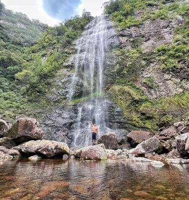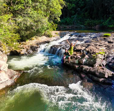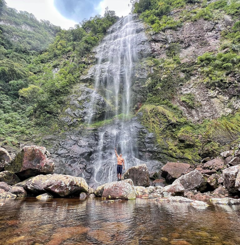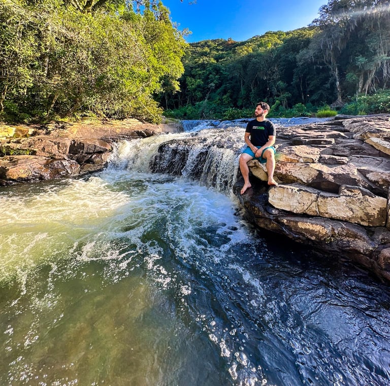 Mas o que realmente encanta quem visita a cidade são suas belezas naturais. Caraá abriga trilhas e cachoeiras deslumbrantes, perfeitas para quem busca contato direto com a natureza. Dentro da própria propriedade do Trilha do Mato Eco Park, está a Trilha das Dez Cachoeiras, uma experiência completa de imersão entre quedas d’água e mata nativa.
