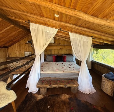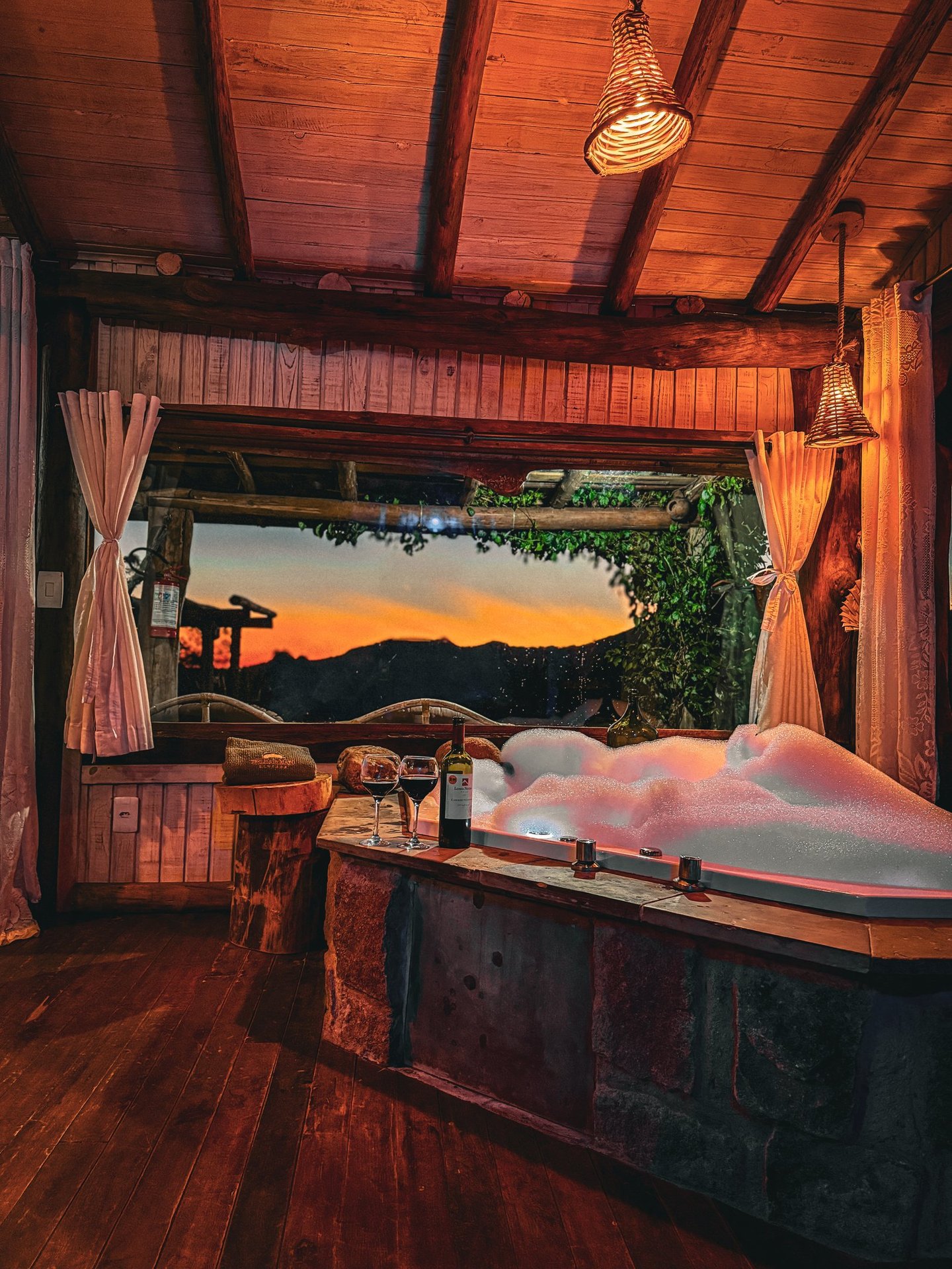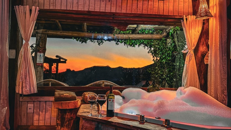 Possuímos três opções de hospedagens rústicas e aconchegantes, com hidro, ofurô e todo o conforto em meio à natureza.